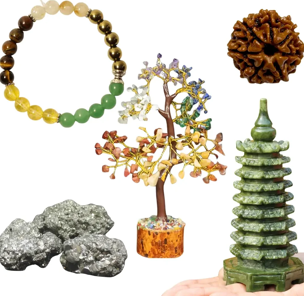 ₹3,499.00Original price was: ₹3,499.00.₹1,999.00Current price is: ₹1,999.00.Vedikaura Kuber Wealth and Abundance Set – Manifest Prosperity with Pyrite, 7 Mukhi, Gem Tree & More