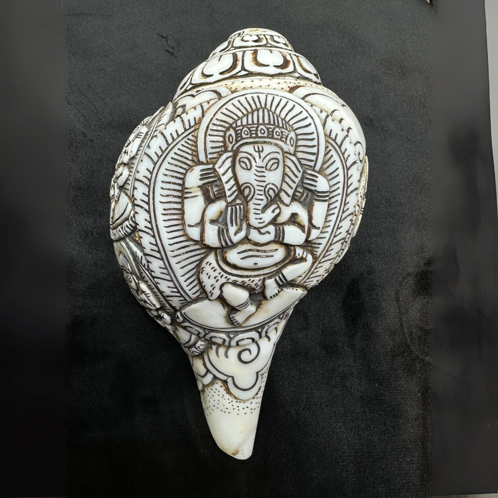Vedikaura Authentic Nepali Hand-Carved Shankh – Sacred Ritual Conch Shell
