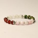 Wear your crystal bracelet on a cleansed body, ideally in the morning after a short grounding or intention-setting ritual. Sit calmly, hold the bracelet in your left hand (receiving hand), and set your intention. Chant “Om” or a simple affirmation like “I am protected / abundant / calm” based on the bracelet’s purpose. Then wear it on your left or right wrist as guided by the crystal’s energy.